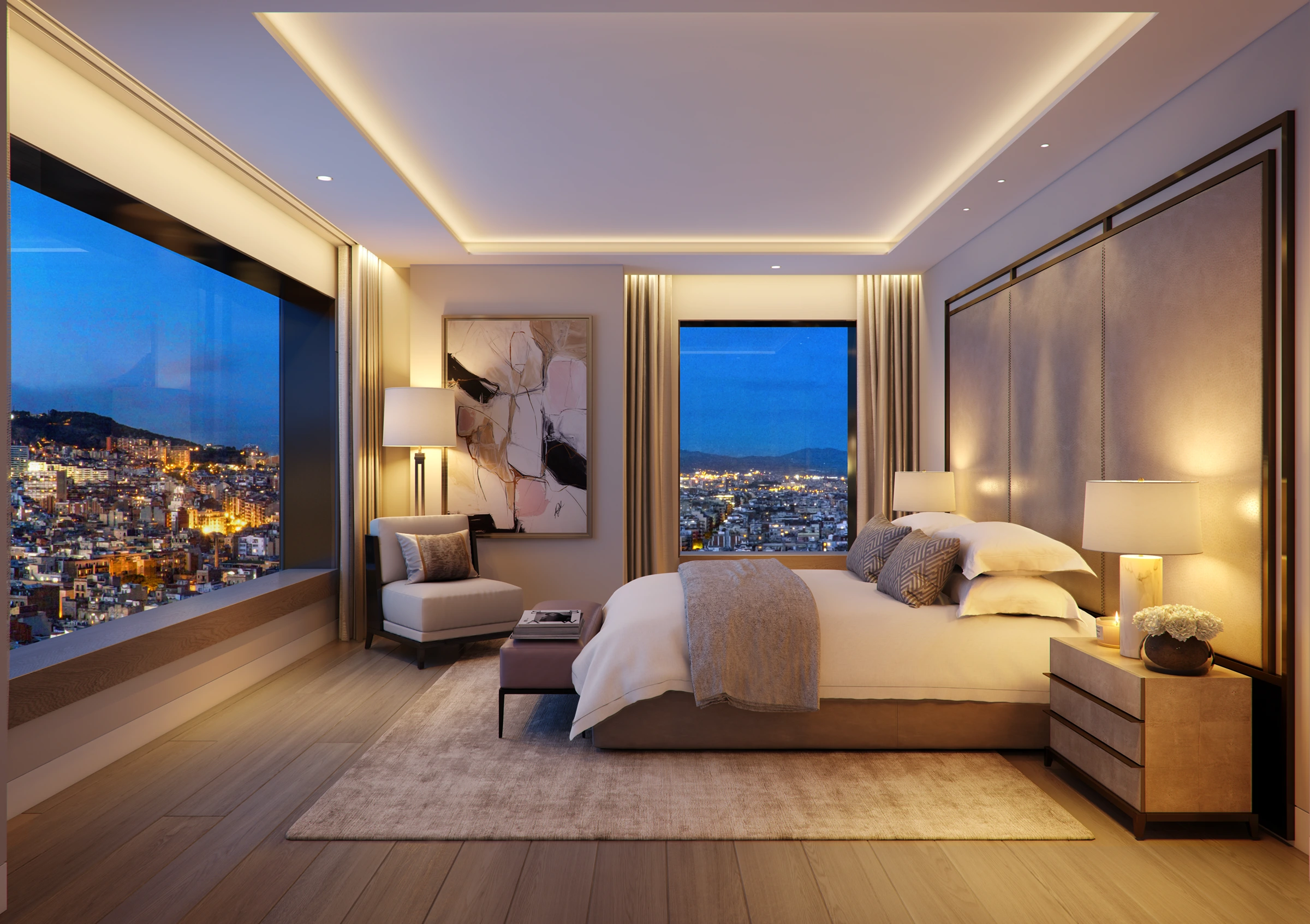 Mandarin Oriental Residences, Barcelona is a unique collection of 30 Residences and 4 penthouses combined with the legendary services and unparalleled amenities of the award-winning hotelier. Designed by celebrated Spanish architect Carlos Ferrater, The Residences offer 20 stories of world-class living along the prestigious Passeig de Gracia. Each of the exquisite Residences were designed by Muza Lab and feature high-quality wood and marble flooring, high-end appliances and fixtures, spectacular architectural coffered ceilings, and bespoke windowsills designed as panoramic seating benches overlooking the city and sea.